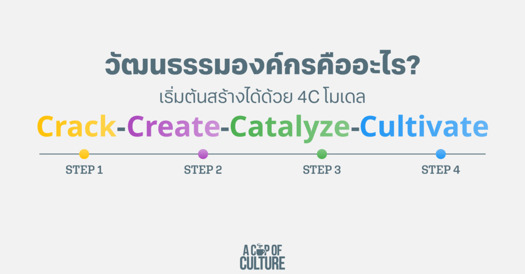 หากต้องการสร้างวัฒนธรรมองค์กรให้สำเร็จ จำเป็นต้องกำหนด “พฤติกรรม” ที่สอดคล้องกับค่านิยมหลักขององค์กร และจำเป็นต้องใช้กระบวนการที่มีแบบแผน หนึ่งในแนวทางที่เรายึดถือและพิสูจน์แล้วว่าได้ผล คือ โมเดล 4C ซึ่งช่วยให้องค์กรเปลี่ยนแนวคิดไปสู่การปฏิบัติอย่างแท้จริง