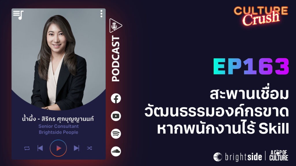 หลายองค์กรอาจมี Core Value และ Key Behavior ที่ชัดเจนอยู่แล้ว แต่พฤติกรรมที่อยากเห็นกลับ “ไม่เกิดขึ้นจริง” ไม่ใช่เพราะคนไม่เห็นด้วย — แต่เพราะพวกเขายัง “ทำไม่ได้” เพราะขาด “สะพานเชื่อม” ระหว่างความตั้งใจกับการลงมือทำนั่นเอง และสะพานนั้นก็คือ Skill (ทักษะ) Culture จะไม่เกิดจากการสื่อสารเพียงอย่างเดียว แต่ต้องมาพร้อมการพัฒนา “ทักษะที่ทำให้คนทำได้จริง”