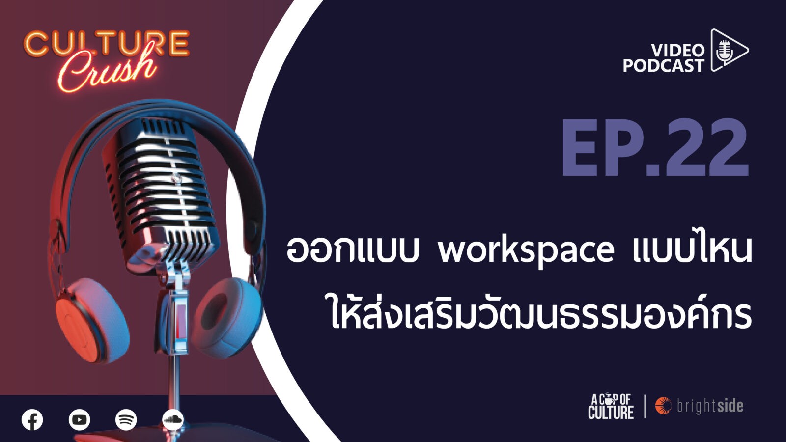 ในตอนนี้เรากลับมาสู่การทำงานในรูปแบบใกล้เคียงปกติ เพราะฉะนั้นในมุม Workspace หรือสถานที่ทำงาน ควรออกแบบหรือควรมีวิธีคิดที่จะสร้างให้ตอบโจทย์วัฒนธรรมองค์กรอย่างไรได้บ้าง สถานที่หรือออฟฟิศมีผลอย่างมากในการสร้างวัฒนธรรมองค์กร Podcaster: บอล