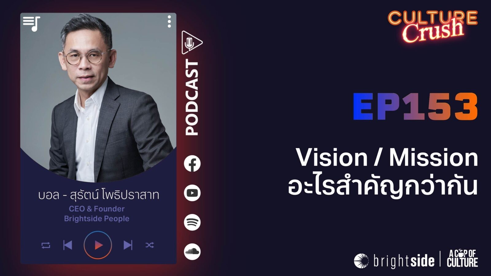ในตอนนี้ Culture Crush จะพาไปสำรวจความเข้าใจเรื่อง Vision กับ Mission ว่าแท้จริงแล้วอะไรสำคัญกว่ากัน