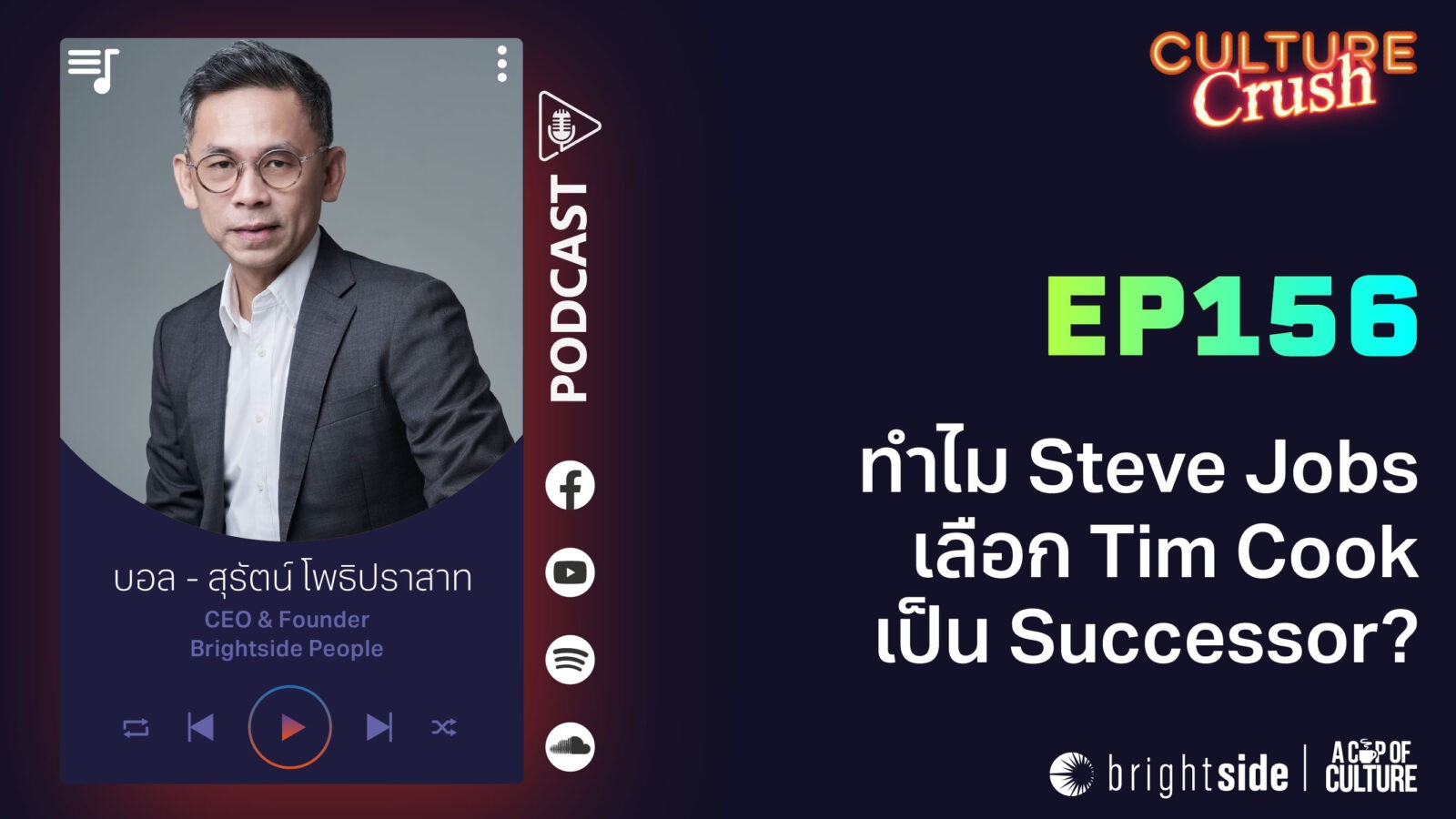 Culture Crush ตอนนี้จะพาคุณเจาะลึกบทเรียนสำคัญจากการส่งไม้ต่อของ Steve Jobs ที่ตัดสินใจเลือก Tim Cook