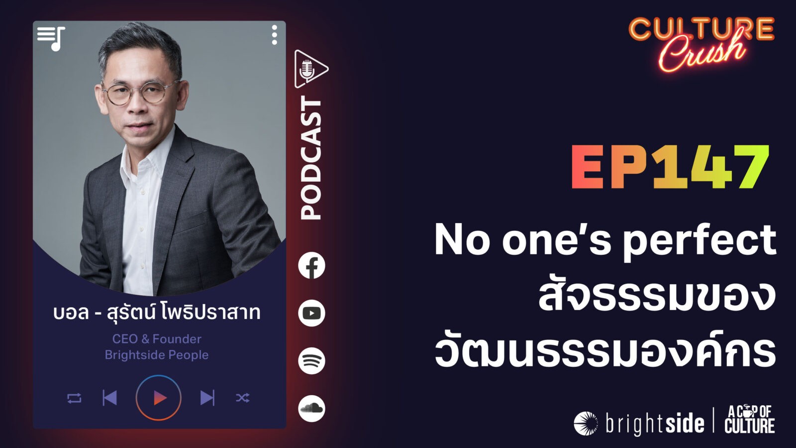 Culture Crush ตอนนี้จะชวนคุณทบทวนอีกมุมหนึ่งของการสร้างวัฒนธรรมองค์กร ที่ไม่ได้เริ่มจากการหาคนที่ “Perfect” มายืนเป็นโรลโมเดล แต่เริ่มจากการกล้ายอมรับว่า ทุกคนยังมีพื้นที่ให้พัฒนา