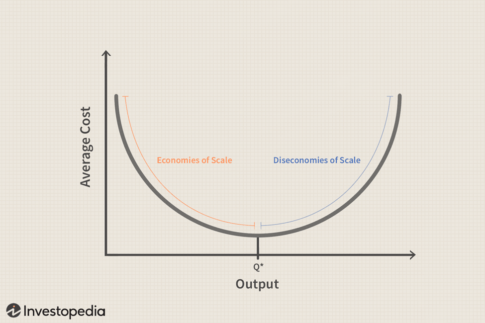 - Diseconomies of Scale: การเร่ง (การพยายามเพิ่ม Output อย่างรวดเร็ว) นำไปสู่ความไร้ประสิทธิภาพ (Average Cost สูงขึ้น)