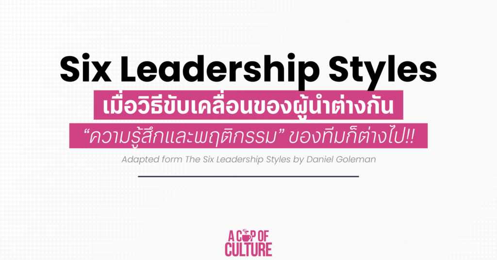วันนี้ A Cup of Culture หยิบนำทฤษฎี The Six Leadership Styles ของ Daniel Goleman มาเชื่อมโยงกับแนวคิดด้าน ‘ความรู้สึก’ และ ‘พฤติกรรม’ เพื่อสะท้อนให้เห็นว่า สไตล์ของผู้นำนั้นขับเคลื่อน Behavioral Change ของพนักงานอย่างไรบ้าง?